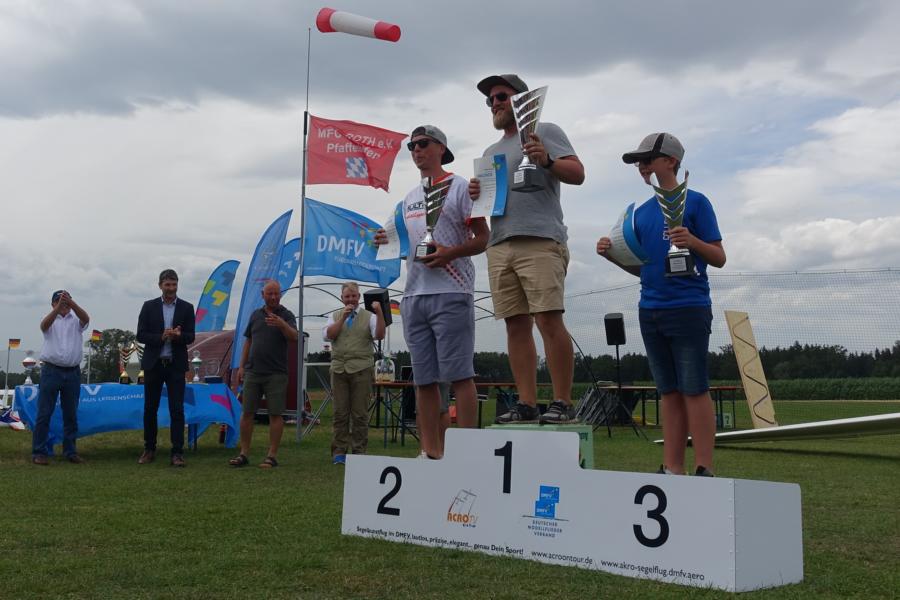 Mit einem Teilnehmerrekord fand am 21. bis 23.07.2023 die Deutsche Meisterschaft und Teilwettbewerb zur Contest Tour im Segelkunstflug in Pfaffenhofen/Roth statt. Das Interesse war sehr groß, von insgesamt 73 gemeldeten Teilnehmern nahmen schlußendlich 62 an der DM teil, was immer noch eine beachtliche Zahl ist. 29 in Advanced und 33 in Unlimited aus den DACH-Ländern sowie Spanien sorgten für die Internationalität, bemerkenswert aus Spanien einen weiten Weg angereist Nelly Diez und Amando Blanco. Der Verein unter dem Vorstand Holger Höchsmann präsentierte sich sehr gut vorbereitet, eine perfekte Infrastruktur und Versorgung mit Essen und Trinken ließen keine Wünsche offen. Es ist heute nicht mehr einfach, Vereine zu finden, die 50 (!) freiwillige Helfer aufbringen, die sich um den Auf- Abbau sowie einen reibungslosen Ablauf im Hintergrund kümmern, das ist eine tolle Leistung des Vereins. Am Freitag baten die Organisatoren, Lars Wenckel und Dominik Braun früh zum Briefing und den Vorflügen, denn es galt mit der hohen Teilnehmerzahl fertig zu werden. Schleppiloten und Punkterichter waren in ausreichender Anzahl vor Ort und bereit, so daß gut durch gewechselt werden konnte. Damit waren am Ende 5 Durchgänge inklusive Kür zu schaffen, vor allem die Kür stellt meist für die auch in Roth sehr zahlreichen Besucher einen attraktiven Programmpunkt dar. Zur Advanced Kür am Sonntag und dem letzten Durchgang Unlimited stellte sich noch ein starker und böiger Wind ein, der vor allem den Schleppern viel abverlangte, es wurde jedoch ohne Zwischenfälle gemeistert. Das zeigt das hohe fliegerische Niveau aller Beteiligten, während der drei Tage Wettbewerb kam es bei über 300 Wertungsflügen zu keinem Ausfall. So konnte am Sonntag eine wie so oft zügige Siegehrung stattfinden. Danke an alle Helfer und Organisatoren im Verein, die Punkterichter und Schlepper sowie and die Organisation durch Lars und Dominik, das war eine rundum gelungene Sache mit dieser DM.